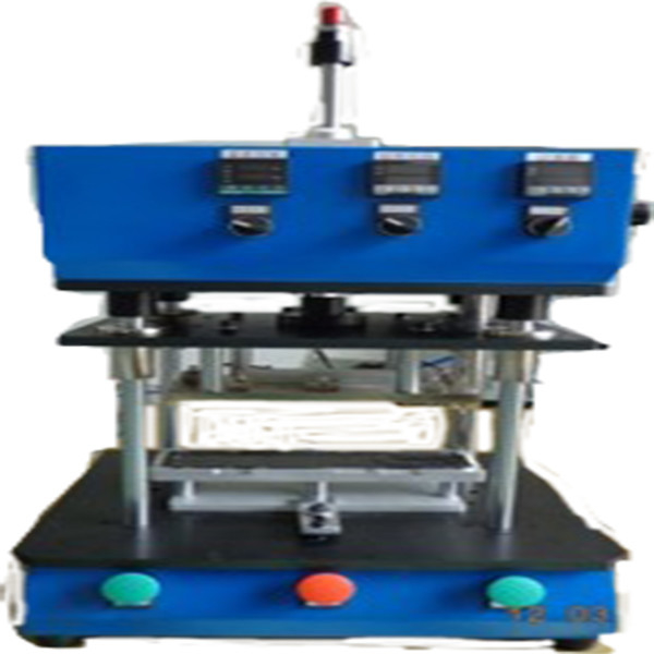 la machine 1.The entière est sous forme de cadre, composé de trois plats : un calibre supérieur, un calibre inférieur, et un calibre chaud, et est équipé d'un moule chaud et d'un moulage à froid en plastique supérieur et inférieur.